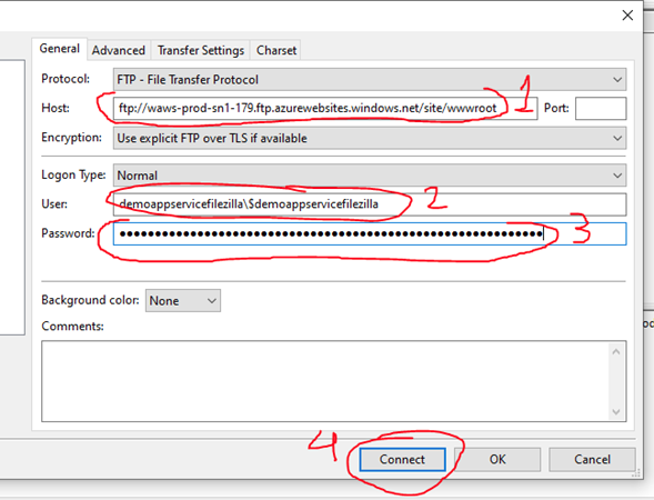 - Podrás conectarte mediante el protocolo FTP a la app web de app Service mediante la aplicación Filezilla